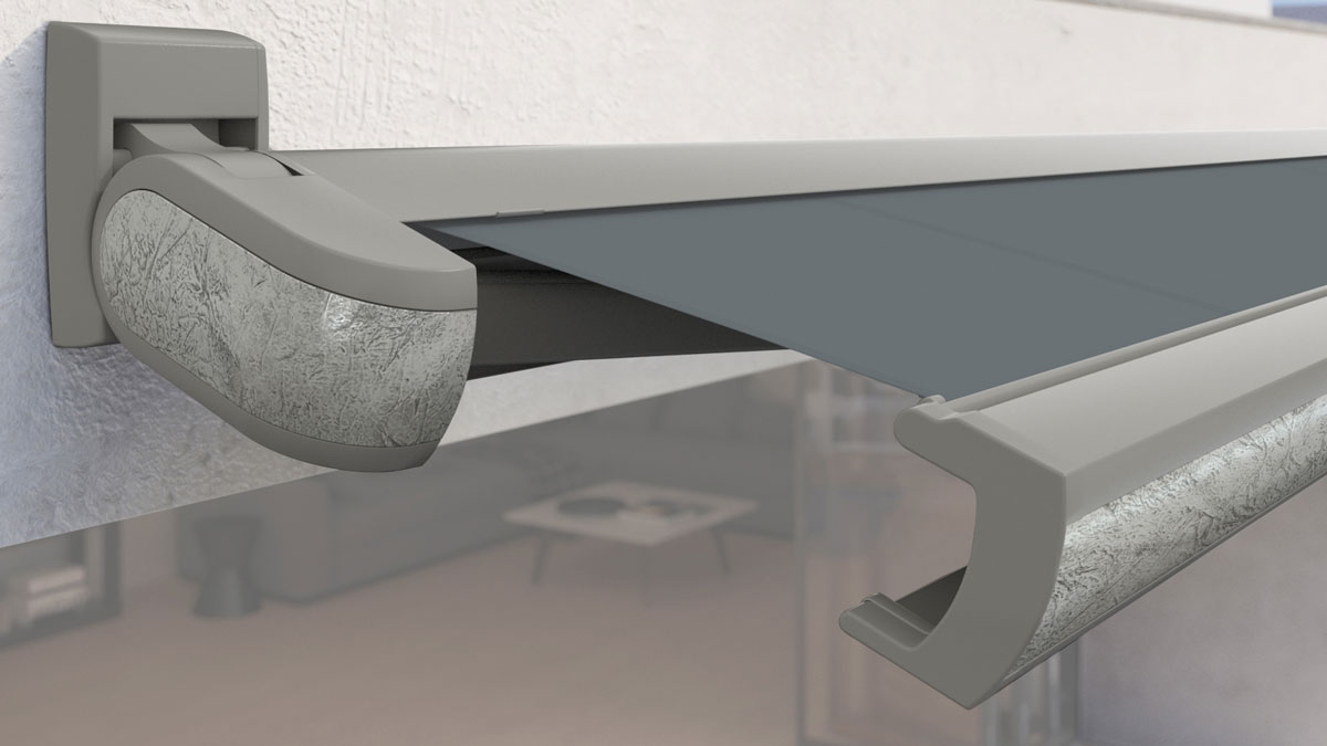 Endkappen und Seitenspiegel aus Glanzchrom bieten stilvolle Akzente für Ihre Markise. Individualisieren Sie Ihren Sonnenschutz!